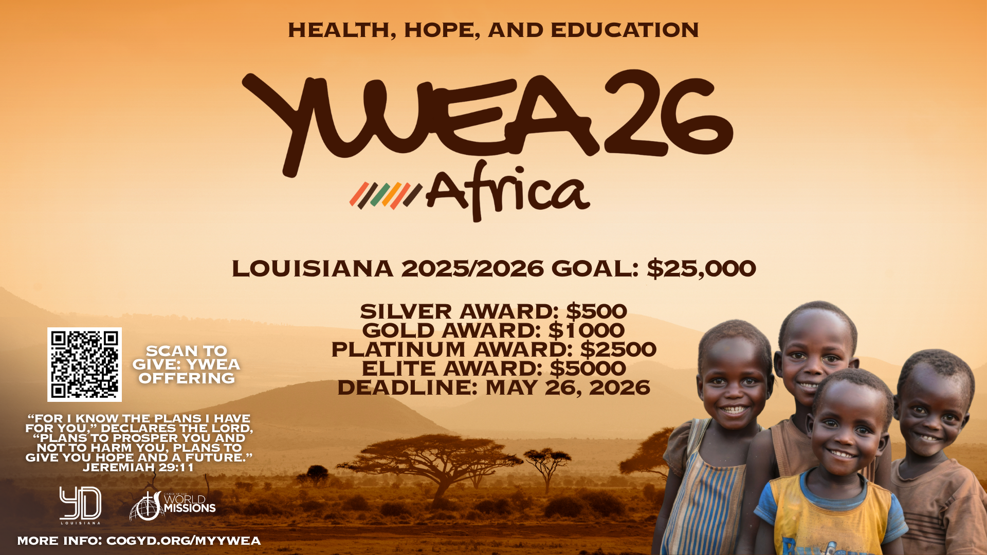 The Louisiana Church of God Youth & Discipleship ministries seeks to empower the youth of today for ministry NOW. We believe our youth have a divine call of God upon their life that will greatly impact our world and FINISH the Great Commission with the Gospel of Jesus Christ. The Louisiana Youth & Discipleship Department provides opportunities for various ministries, such as Youth Camp, Winterfest, Teen & Junior Talent, YWEA and other means.